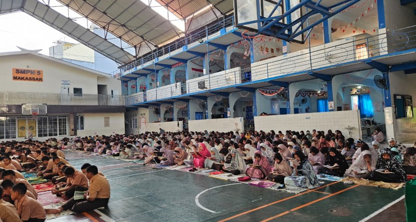 Makassar, 29 Agustus 2025 - Dalam rangka membentuk karakter religius sekaligus menjaga kesehatan mental peserta didik, UPT SPF SMP Negeri 5 Makassar melaksanakan program Gerakan Sehat Jiwa pada Jumat pagi (29/8). Kegiatan ini rutin dilaksanan setiap hari jumat pada pekan genap setiap bulan diawali dengan salat dhuha berjamaah di aula sekolah, dilanjutkan dengan pembacaan surah Al-Kahfi secara bersama-sama.